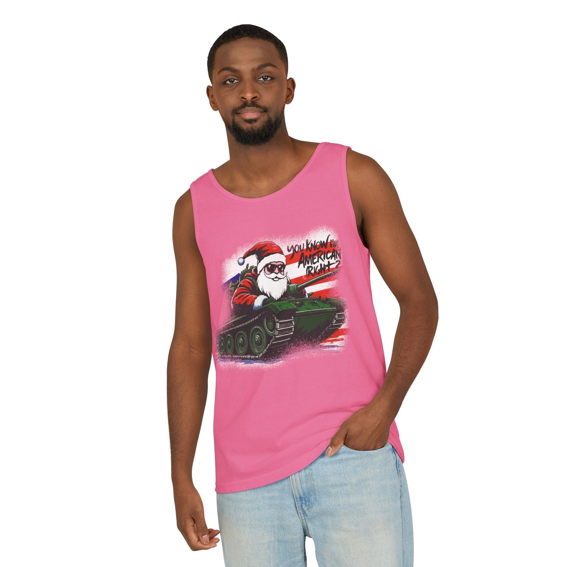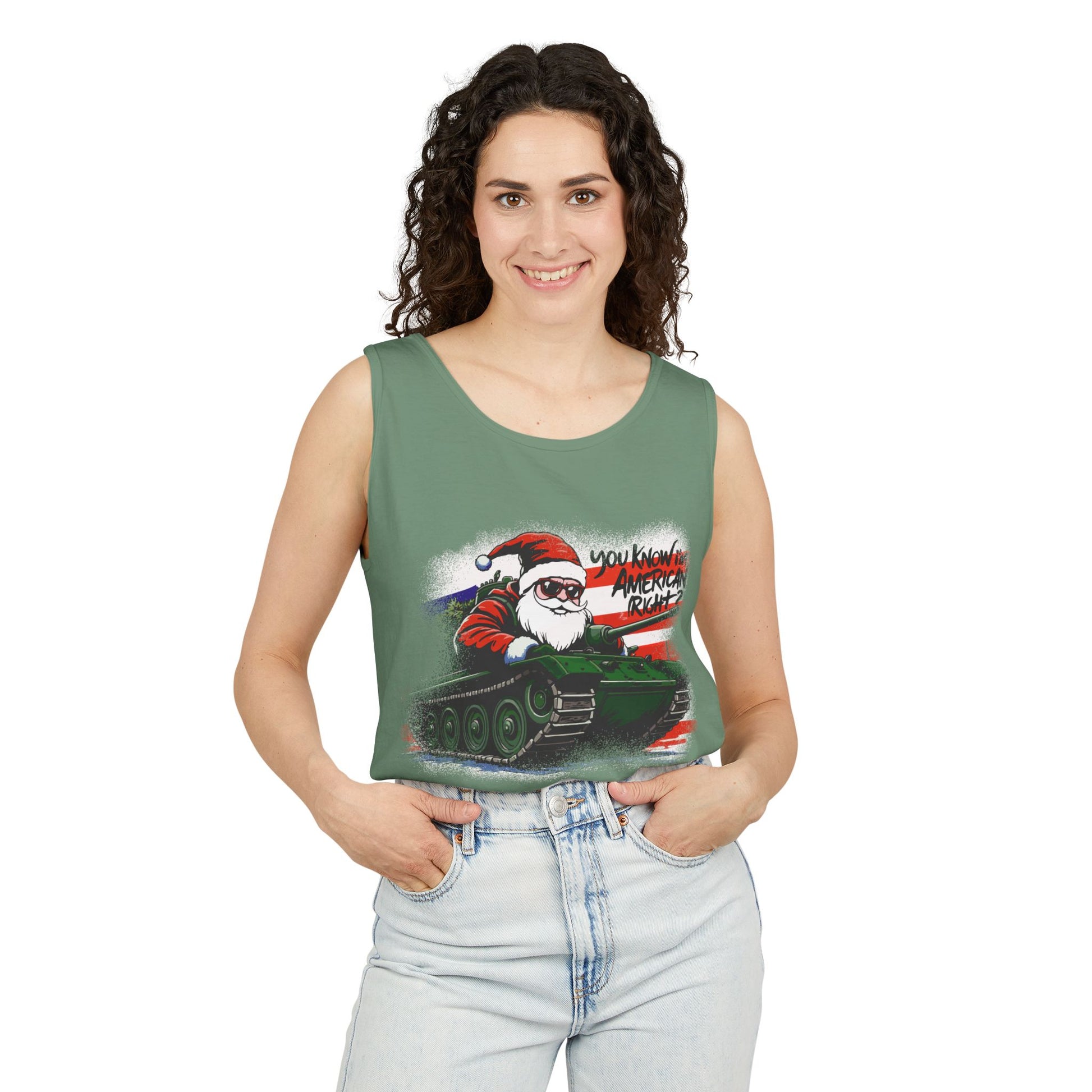 Santa Tank Top — 'YOU KNOW I’M AMERICAN RIGHT?' Military Holiday Graphic Tank
